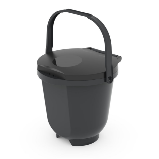 The 23L Curbside Caddy for outdoor use is equipped with all the features necessary for ergonomic emptying. A mechanism integrated into the hinge of the handle controls the lid closure. When the handle is positioned at the front or top, the container remains securely closed. The lid can only be opened when the handle is folded back. This ensures that animals cannot access the container on collection day.