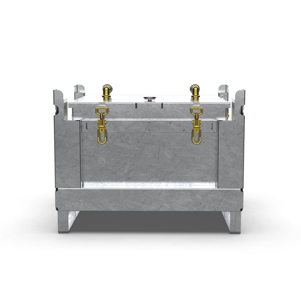 - Zwei Entlüftungsöffnungen R1" im Deckel, jeweils mit integrierter Flammensperre