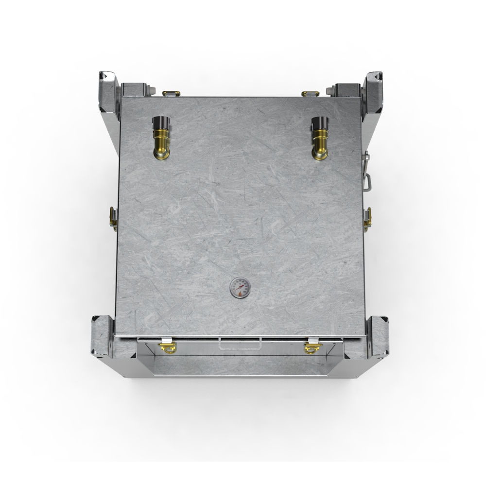 - Zwei Entlüftungsöffnungen R1" im Deckel, jeweils mit integrierter Flammensperre
