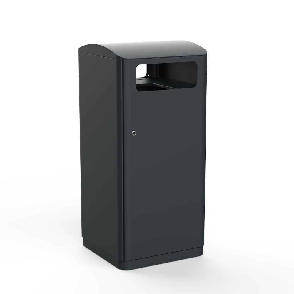 - Emptying: Tür mittels Schnappschloss öffnen und der Müllgroßbehälter kann heraus gefahren werden