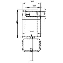 - Emptying: Abfallsack; Schnappschloss entriegeln, Einwurfklappe öffnen, Ascher entnehmen, Behälter mit Abfallsackhalter frei zugänglich für Abfallsackentleerung