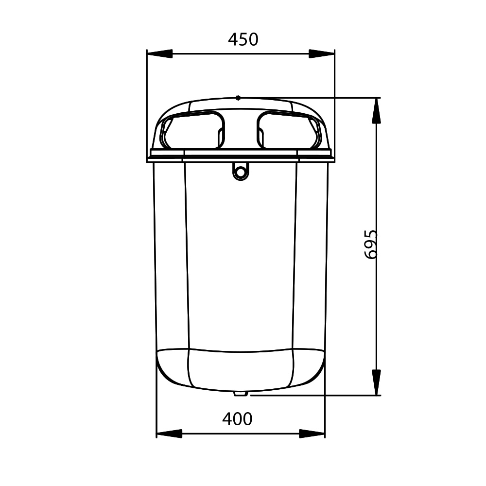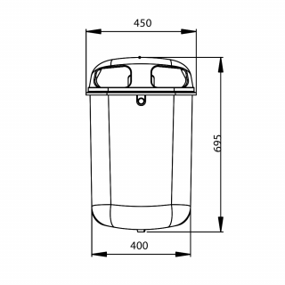 - Surface: Haube mit Halterung: Stahl verzinkt / verzinkt-lackiert; Umleerbehälter: Kunststoff HDPE