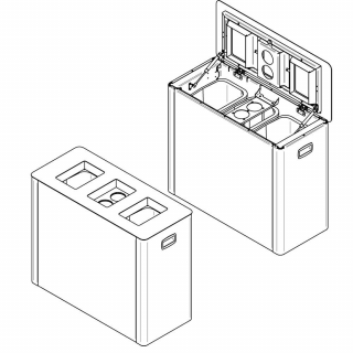 - Emptying: Innenbehälter mit Abfallsack; Deckel aufschwenken, Innenbehälter frei zugänglich für Abfallsackentleerung