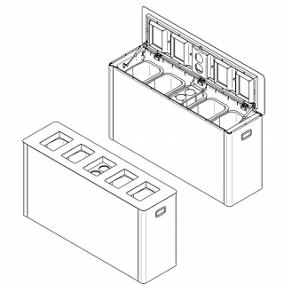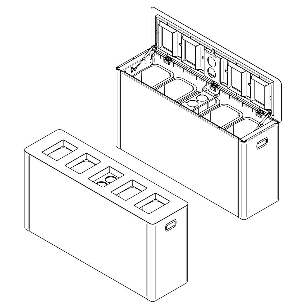 - Emptying: Abfallbehälter 5 x 30 L; Deckel aufschwenken, Innenbehälter frei zugänglich für Abfallsackentleerung