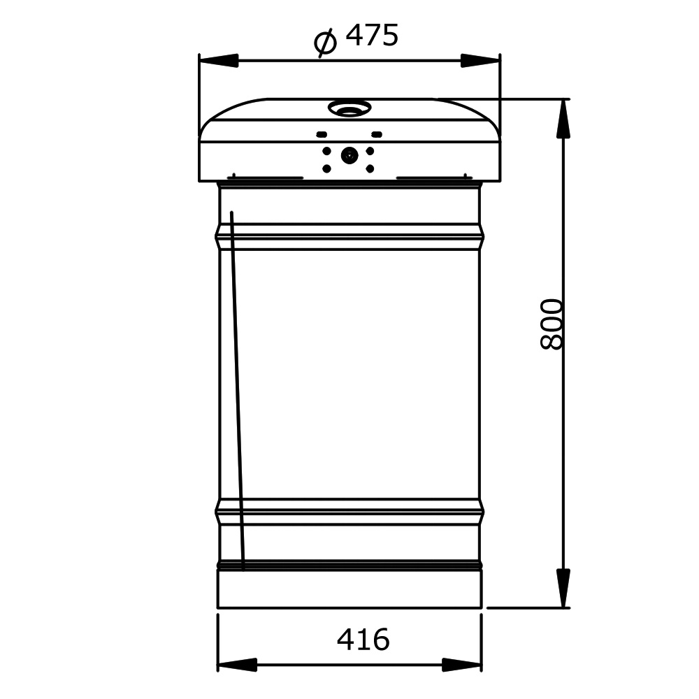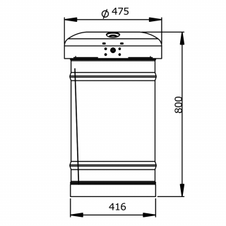 - Emptying: Umleerbehälter; Schnappschloss entriegeln, Haube aufschwenken, Behälter und Ascher frei zugänglich für Entleerung