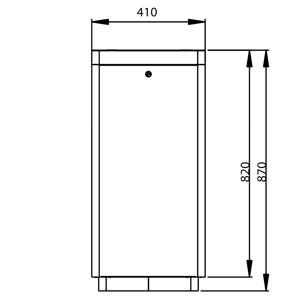 - Emptying: Abfallsack; Schnappschloss entriegeln, Einwurfklappe öffnen, Ascher entnehmen, Behälter mit Abfallsackhalter frei zugänglich für Abfallsackentleerung