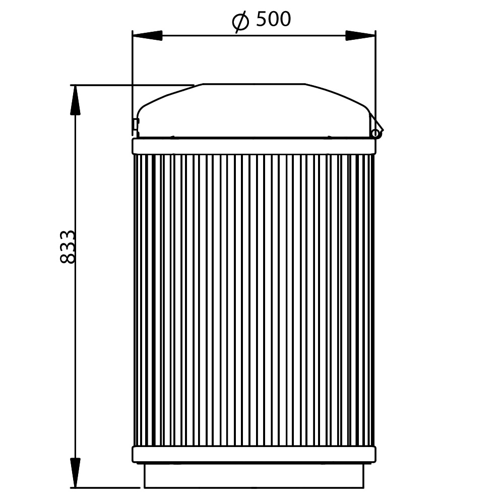 - Emptying: Umleerbehälter oder Abfallsack; Schnappschloss entriegeln, Haube aufschwenken, Behälter/Abfallsack und Ascher frei zugänglich für Entleerung