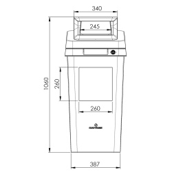 - Emptying: Verschluss öffnen, Innenbehälter mit Abfallsack entnehmen, frei zugänglich für Abfallsackentleerung