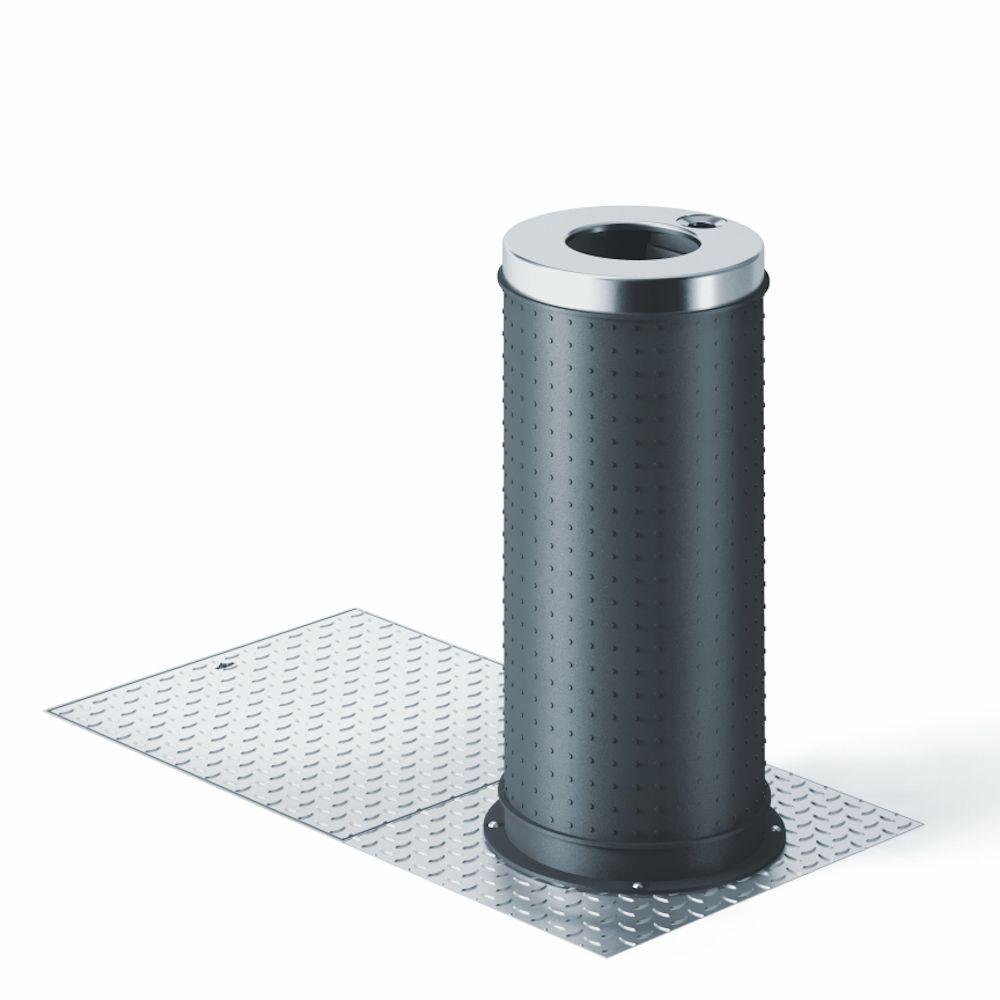 - Surface: Einwurfsäule PINTO mit Ascher: Stahl verzinkt: verzinkt-lackiert; Haube: Edelstahl geschliffen; Untergrundbehälter: Feuerverzinkt / Edelstahl