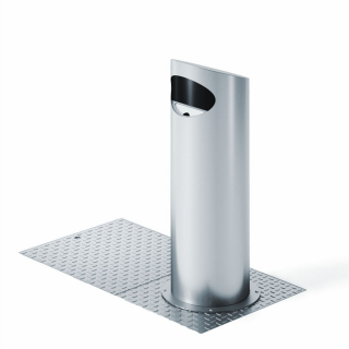 - Surface: Einwurfsäule SANTO mit Ascher: Edelstahl: geschliffen; Stahl verzinkt: verzinkt-lackiert; Untergrundbehälter: Feuerverzinkt / Edelstahl