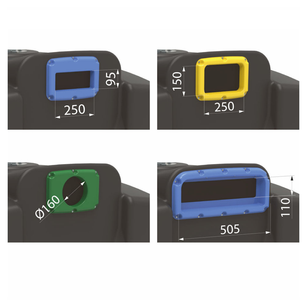 - Color: RAL 6004 Blue grey, RAL 7011 Iron grey, RAL 7021 Black grey, RAL 9001 Cream