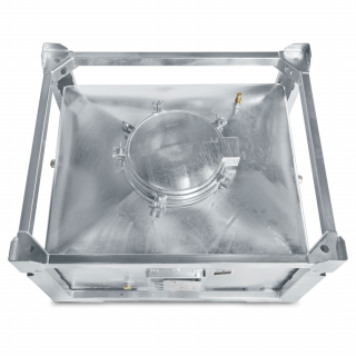 - Einfüllöffnung mit Einfülltrichter und Füllrohr NW 80 sowie herausnehmbarem Sieb
