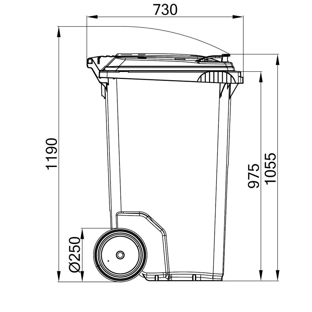 - Wheels: 2 rubber wheels Ø 250mm corrosion free steel axle